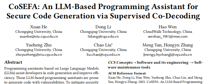 近日,云从科技与重庆大学大数据与软件学院联合研发的编程智能体——CoSEFA(Code SEcurity and Fix Agent)被软件工程领域顶尖会议ACM SIGSOFT软件工程基础国际会议(FSE 2025)正式录用。
